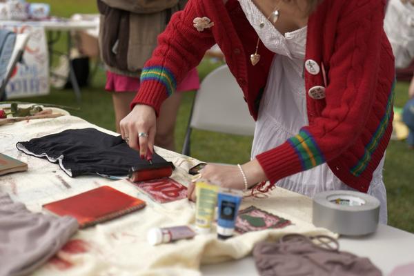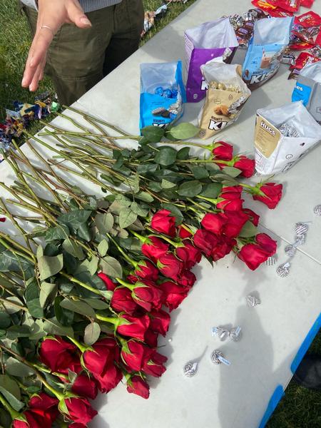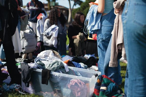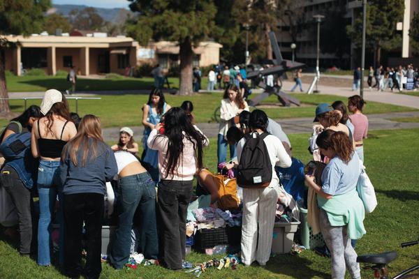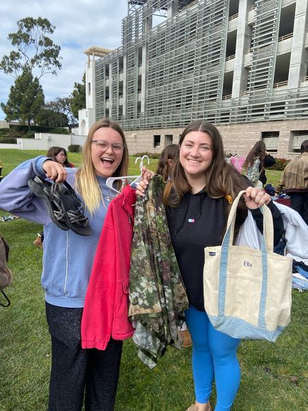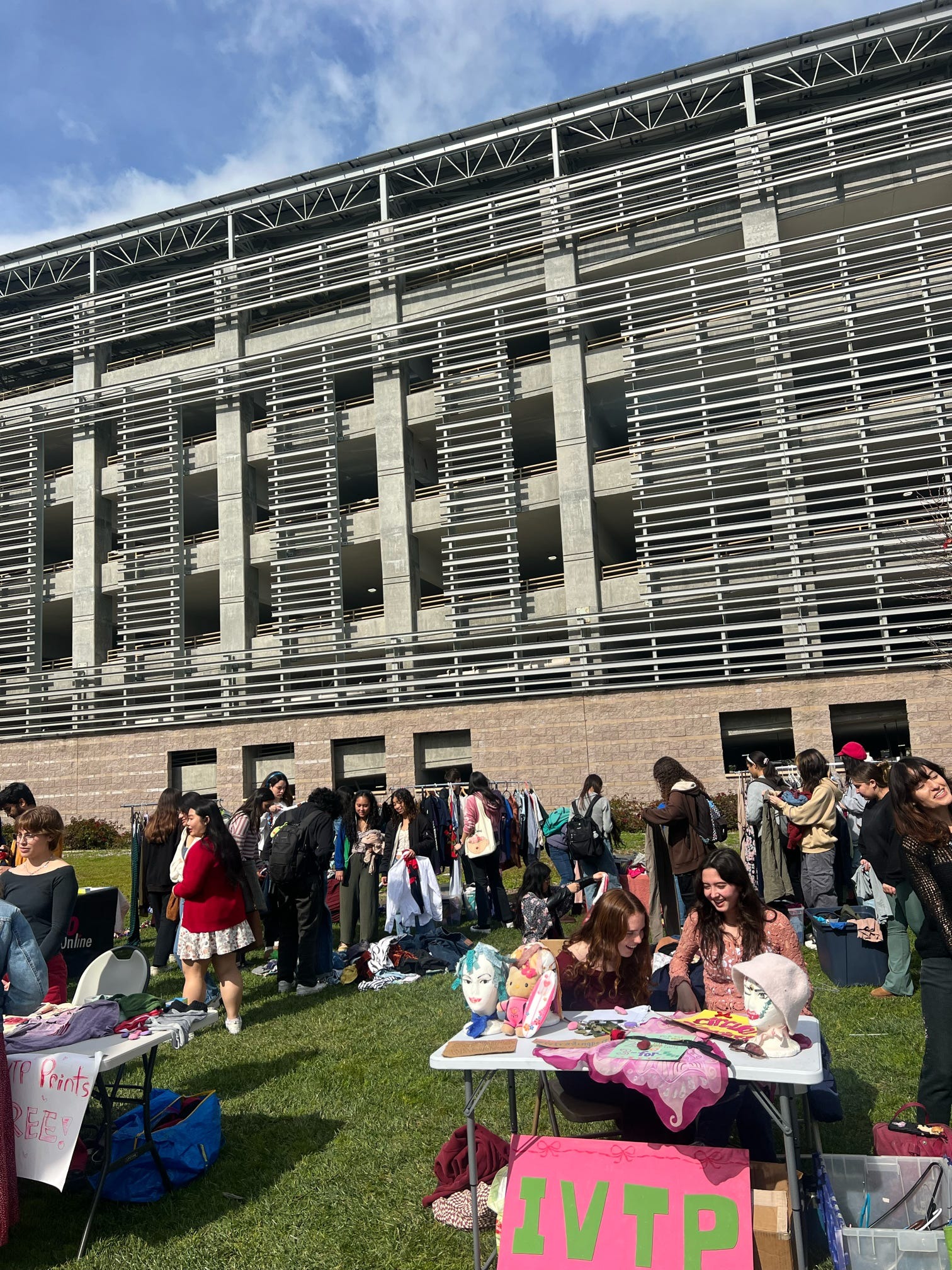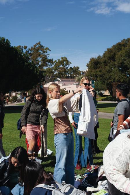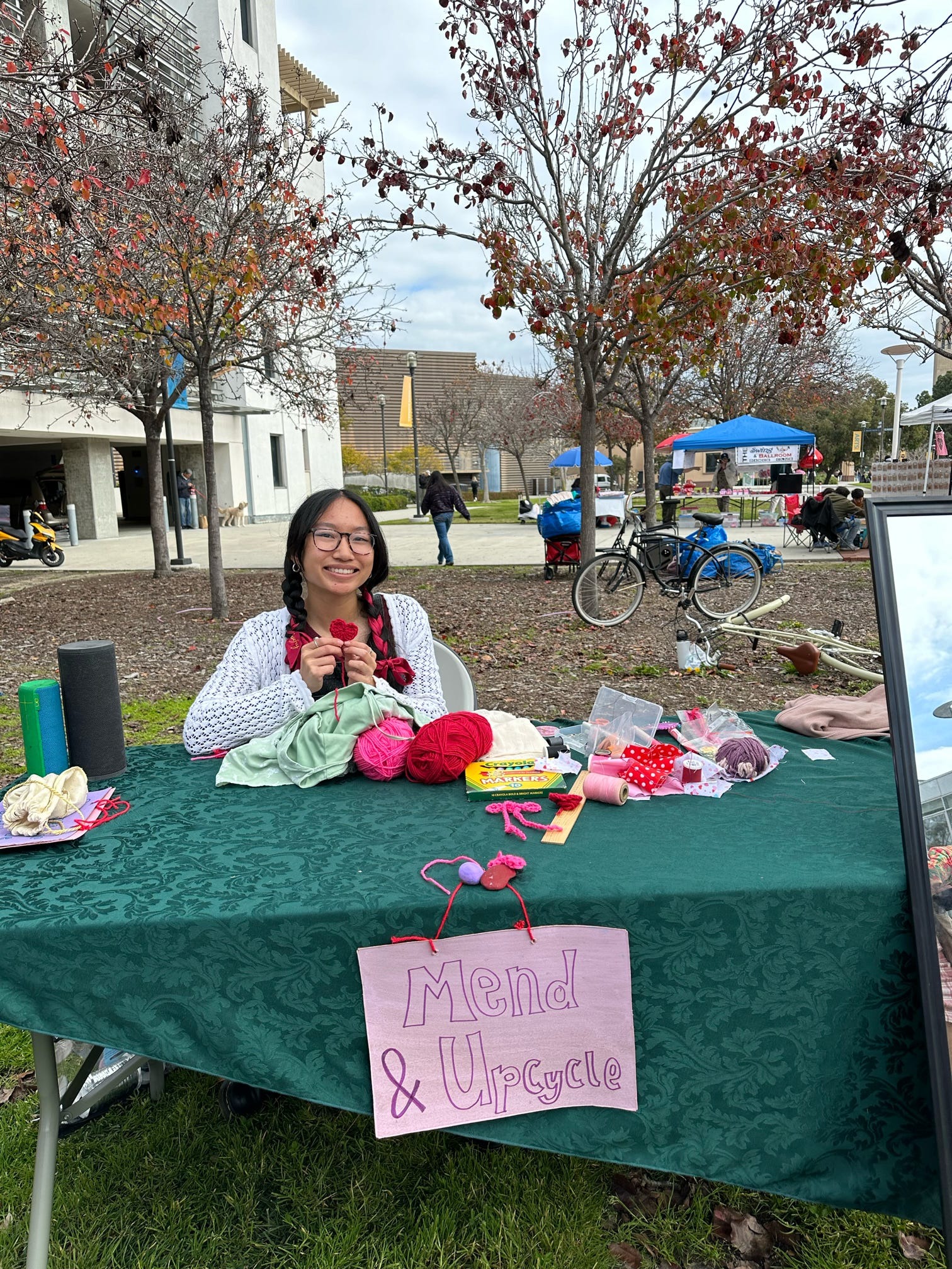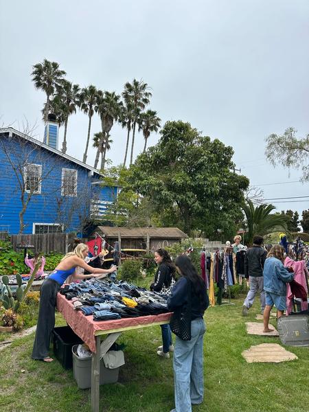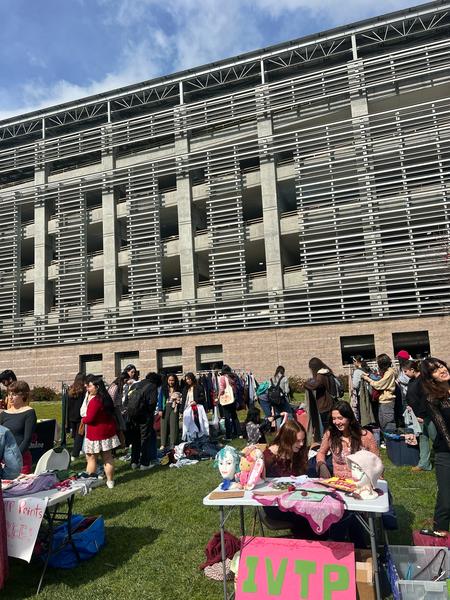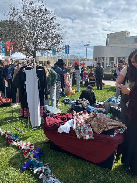 Valentines Day 2024 was our biggest event in the past two years! We recirculated 841 items of clothing in 5 hours on UCSB's campus. We can do this through having our events be "Three-for-Free"s, where anyone from the community can come and grab three or less items of clothing with no strings attached. We also ran different upcycling stations, including homemade clothing stamping, mending, and patch making. In order to truly make this feel like a community event in the way we envisioned, we parter with an array of student-organization vendors, all pertaining in some way to the event's theme of "love". This year, we worked with Students for Reproductive Justice, SexInfo Online, the Trans and Queer Commission, and more!