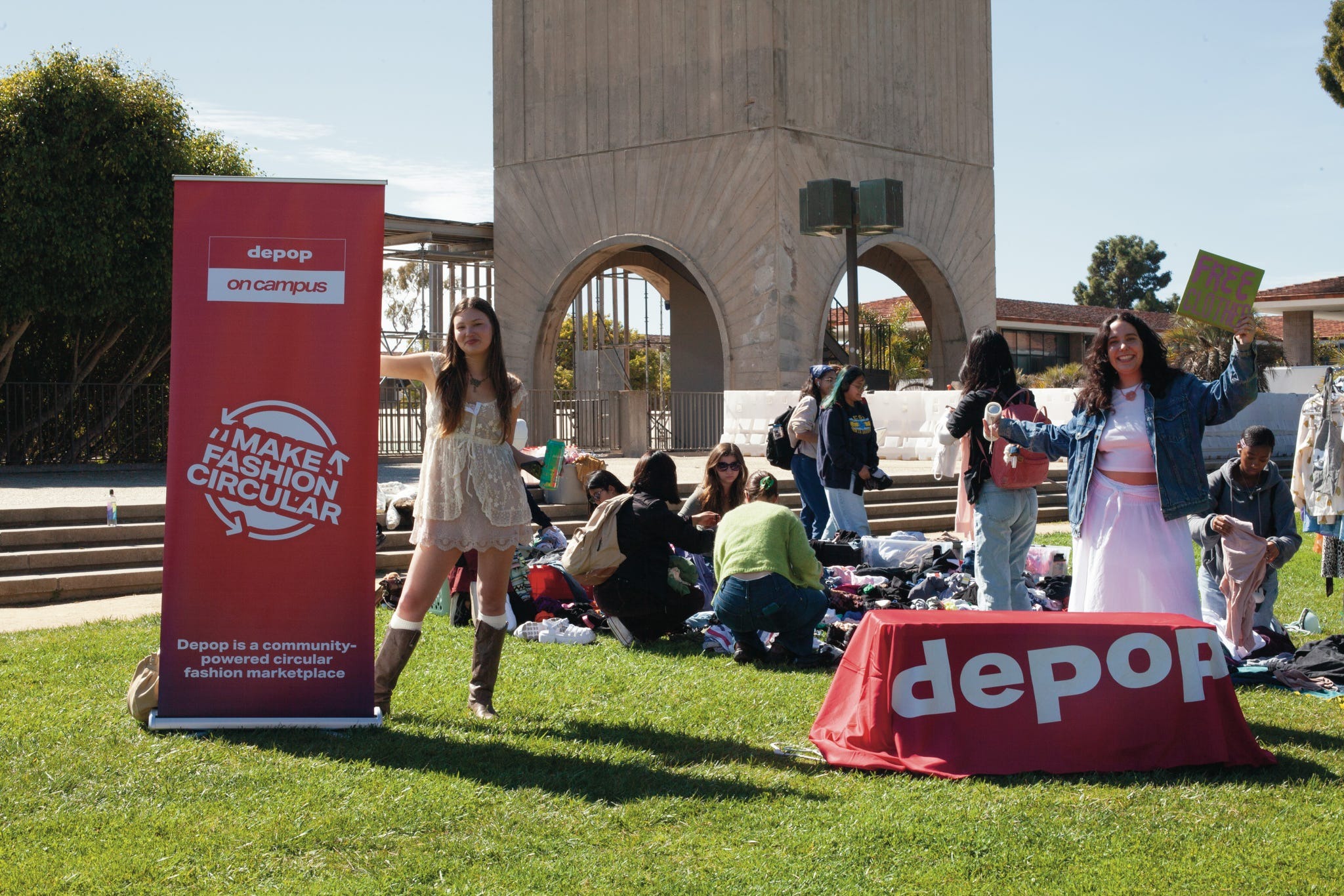 In the 2024-2025 schoolyear, we partnered with Depop to help us put on more events. We started off the year by purging our donations shed with a Goodwill "bins" style event, complete with free merch from the company. We chose to accept this sponsorship because of how closely they align with our mission statement of circular economies and keeping textiles out of landfills and into the hands of our neighbors.